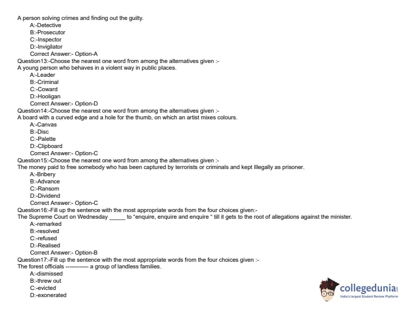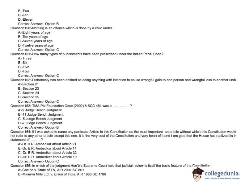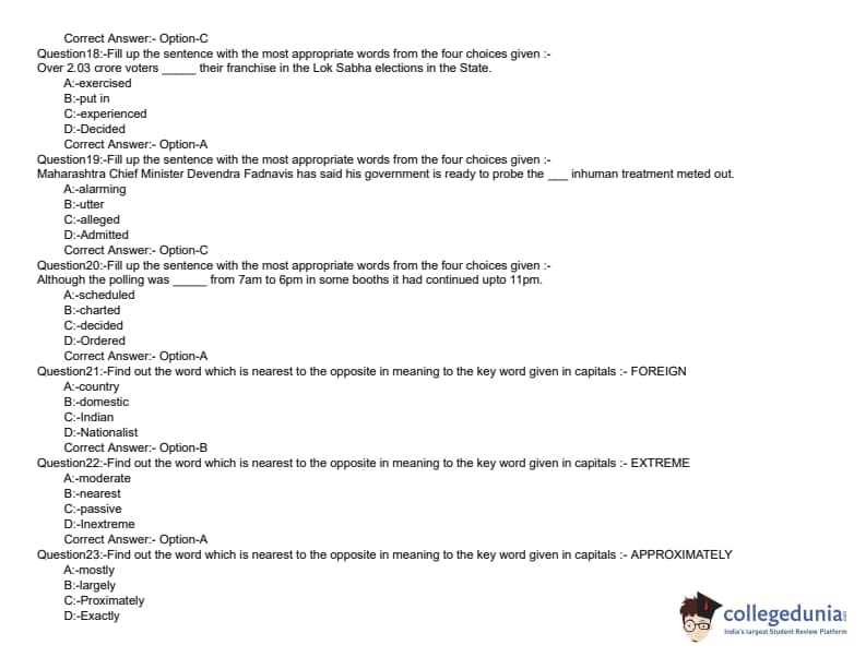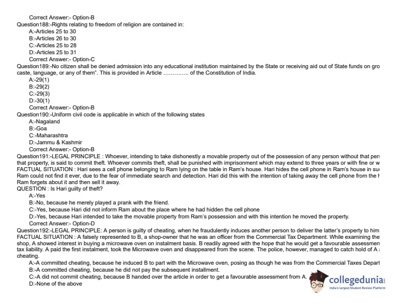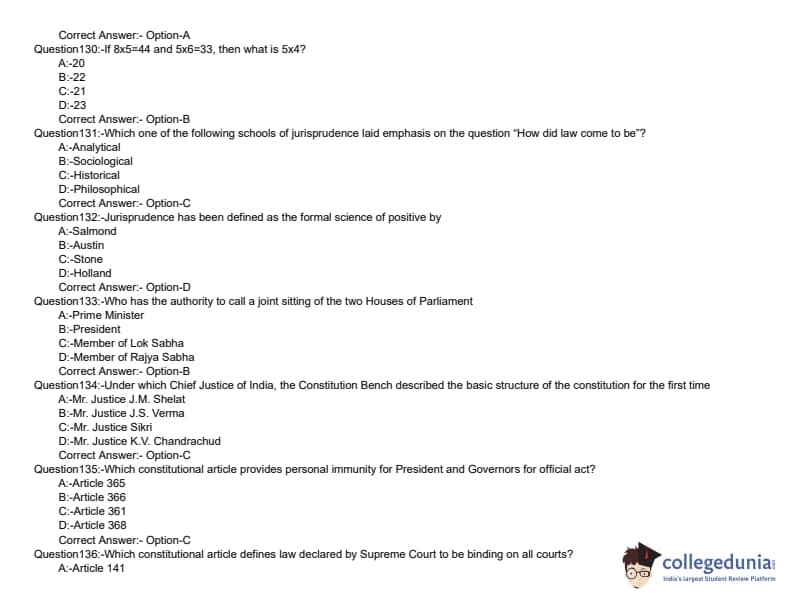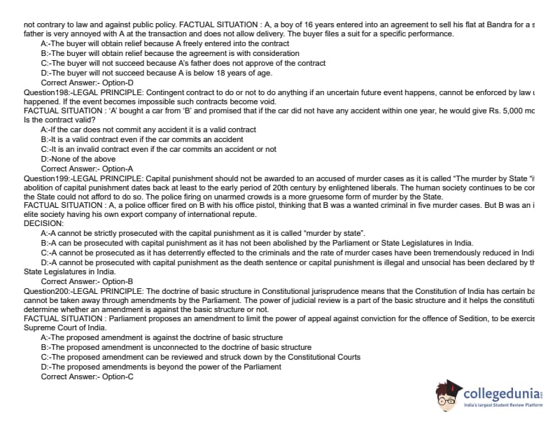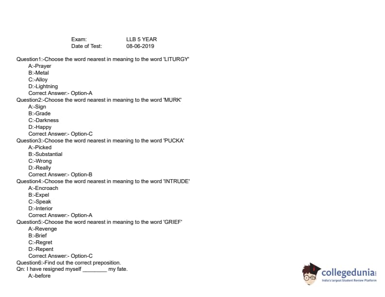 KLEE 2019 LLB 5 YEAR Question paper with answer key pdf conducted on June 8, 2019 is available for download. The exam was successfully organized by Commissioner of Entrance Examinations (CEE). The question paper comprised a total of 200 questions divided among three sections.
