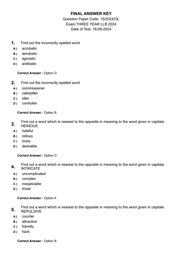 KLEE 2024 LLB 3 Year Question paper with Solution PDF is available for download. The exam was successfully organized by Commissioner of Entrance Examinations (CEE). The question paper comprised a total of 120 questions divided among four sections.