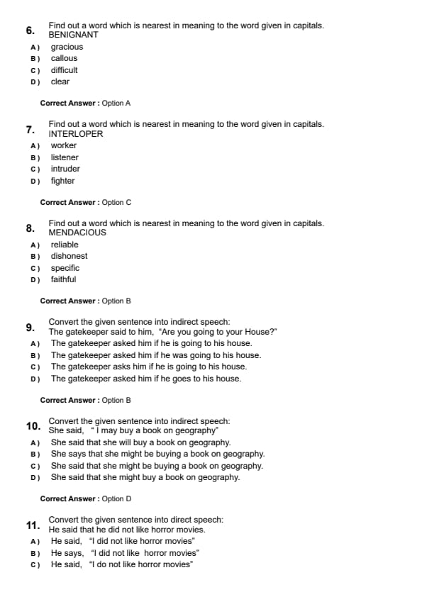 She said that she might buy a book on geography. Quick Tip: When converting direct speech with modal verbs like "may" into indirect speech with a past reporting verb, change "may" to "might" and adjust pronouns accordingly.