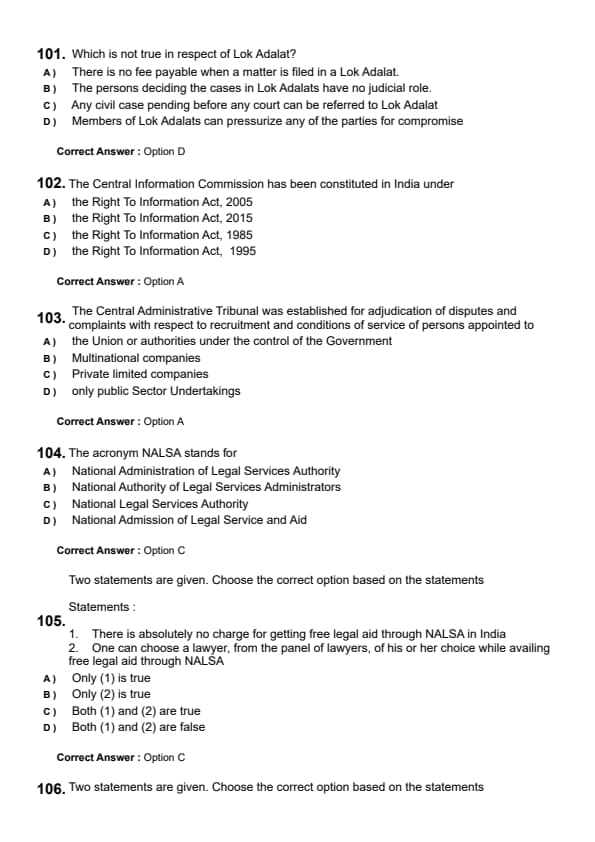 Therefore, both statements (1) and (2) are true. Quick Tip: NALSA ensures free legal aid with freedom to select lawyers from an official panel, facilitating fair justice.