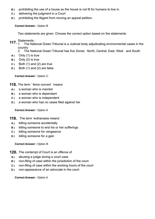 Therefore, both statements (1) and (2) are true. Quick Tip: NGT is a specialized tribunal with five zonal benches for environmental cases.