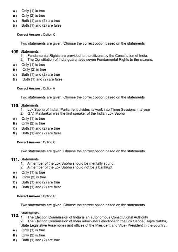 Statement 2: True — G.V. Mavlankar was the first Speaker of the Lok Sabha after independence (1952–1956). Quick Tip: Parliament = 3 Sessions: Budget, Monsoon, Winter. G.V. Mavlankar = 1st Lok Sabha Speaker.