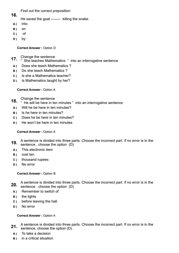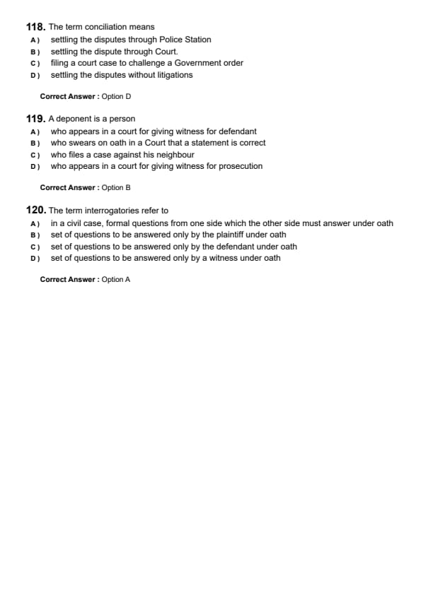 It also doesn't refer only to witnesses (Option D). Quick Tip: Interrogatories = formal written questions in a civil case sent by one party to another, answered under oath before trial.