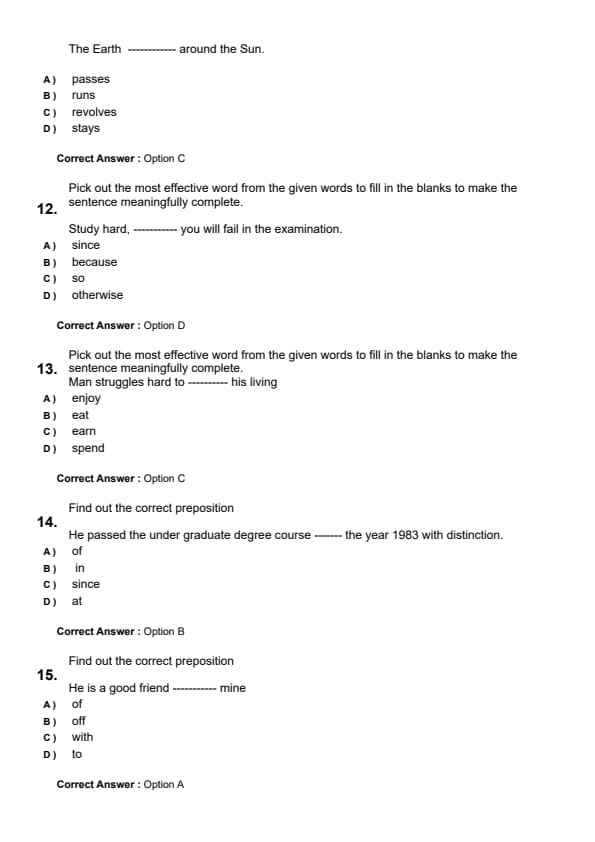 - Option C (revolves): This correctly describes orbital motion — the Earth ``revolves'' around the Sun once a year.