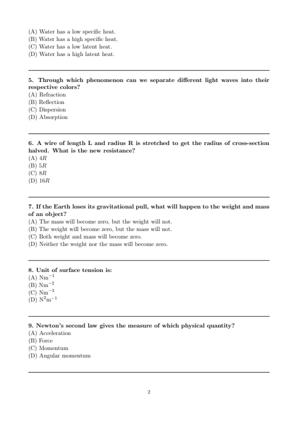 - (D) Angular momentum