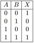 The logical expression \( X \), in its simplest form for the truth table