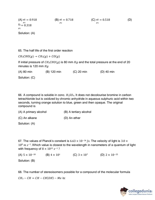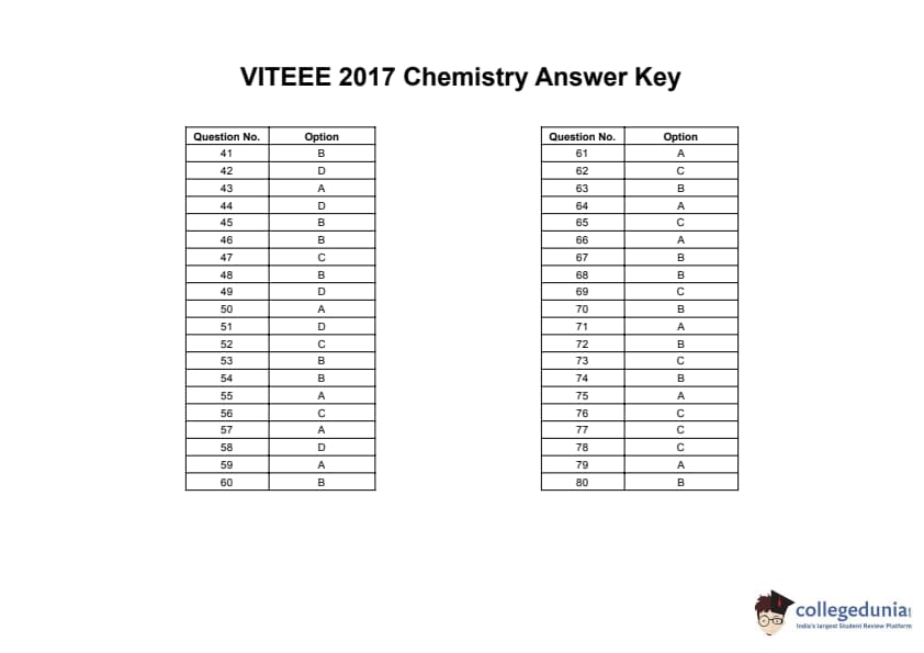 | VITEEE 2017 Chemistry Question Paper PDF | VITEEE 2017 Chemistry Answer Key PDF |
