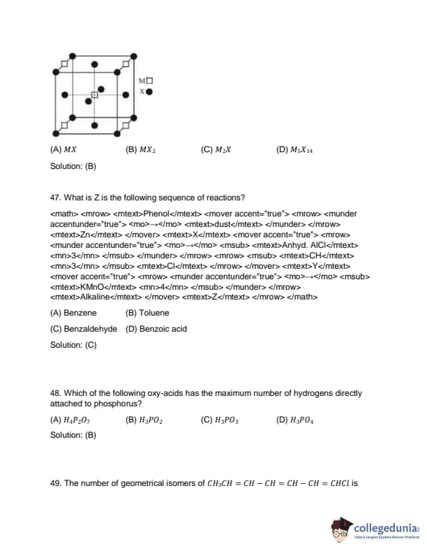 VITEEE 2017 Chemistry Question Paper with Answer Key PDFs (Memory-Based)