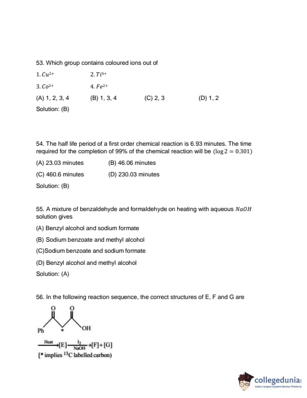 VITEEE 2017 Chemistry Question Papers: The memory-based question paper for VITEEE 2017 Chemistry is available in this article. VITEEE 2017 was conducted by VIT University, Vellore from April 5 to April 16, 2017. The Chemistry question paper had 40 questions with 1 mark each. The difficulty level of VITEEE 2017 Chemistry Question Paper was rated easy to moderate.