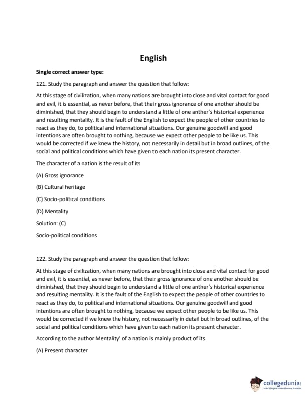 VITEEE 2017 English Question Papers: The memory-based question paper for VITEEE 2017 English is available in this article. VITEEE 2017 was conducted by VIT University, Vellore from April 5 to April 16, 2017. The English question paper had 5 questions with 1 mark each. The difficulty level of VITEEE 2017 English Question Paper was rated easy.