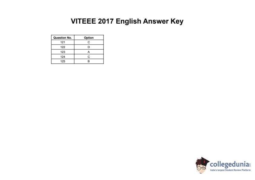 | VITEEE 2017 English Question Paper PDF | VITEEE 2017 English Answer Key PDF |