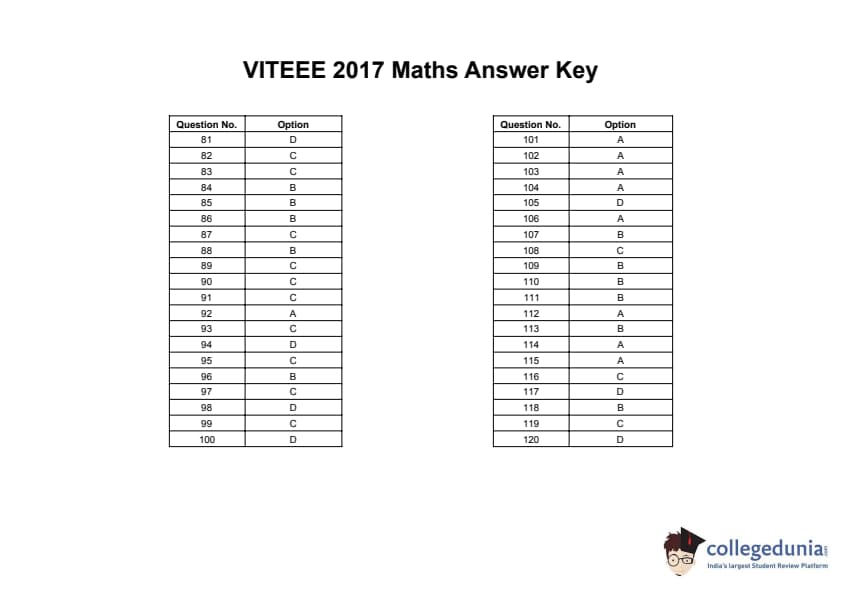 | VITEEE 2017 Mathematics Question Paper PDF | VITEEE 2017 Mathematics Answer Key PDF |
