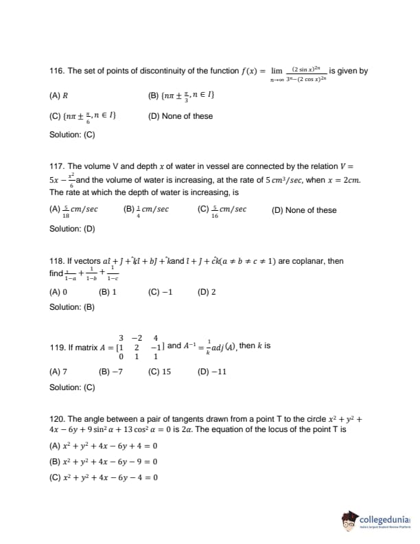 VITEEE 2017 Mathematics Question Papers: The memory-based question paper for VITEEE 2017 Mathematics is available in this article. VITEEE 2017 was conducted by VIT University, Vellore from April 5 to April 16, 2017. The Mathematics question paper had 40 questions with 1 mark each. The difficulty level of VITEEE 2017 Mathematics Question Paper was rated moderately easy.