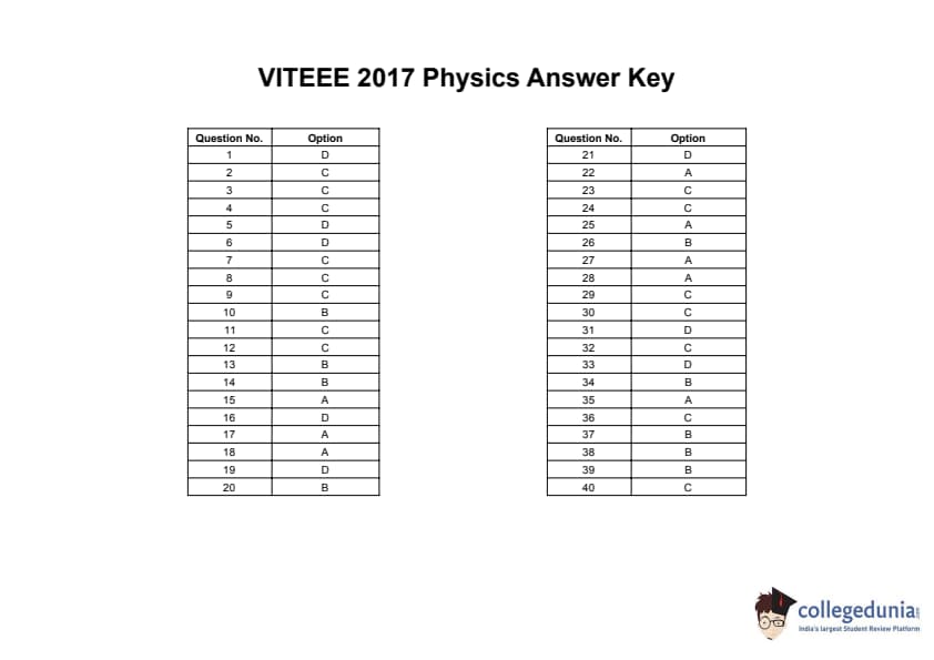 | VITEEE 2017 Physics Question Paper PDF | VITEEE 2017 Physics Answer Key PDF |