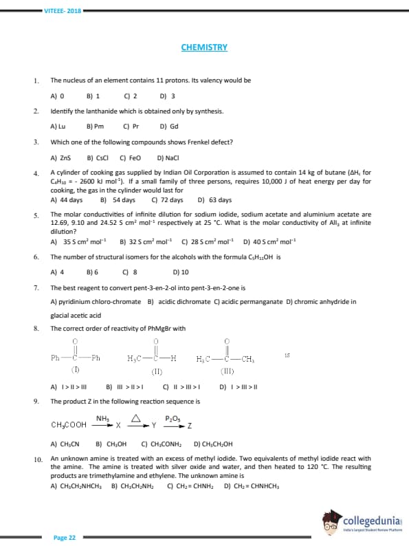| VITEEE 2018 Chemistry Question Paper PDF | VITEEE 2018 Chemistry Answer Key PDF |