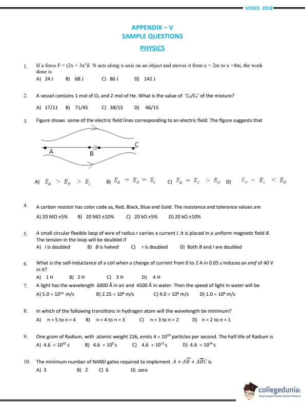 | VITEEE 2018 Physics Question Paper PDF | VITEEE 2018 Physics Answer Key PDF |