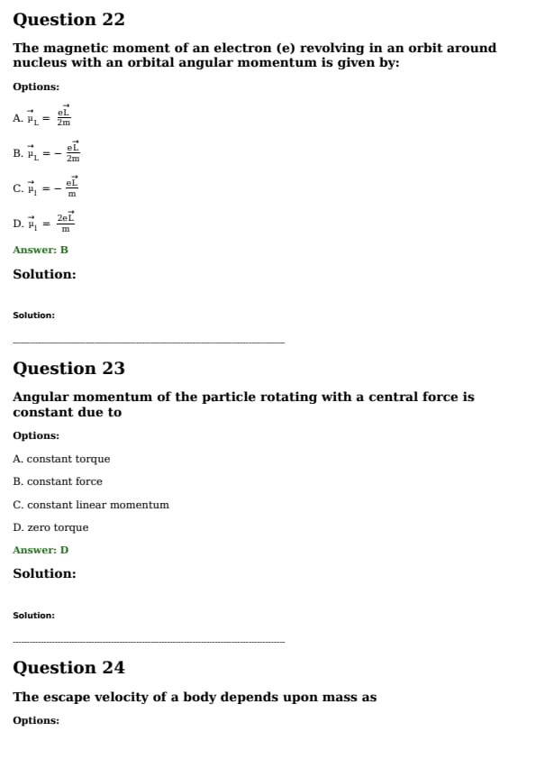 The magnetic moment of an electron (e) revolving in an orbit around nucleus with an orbital angular momentum is given by: