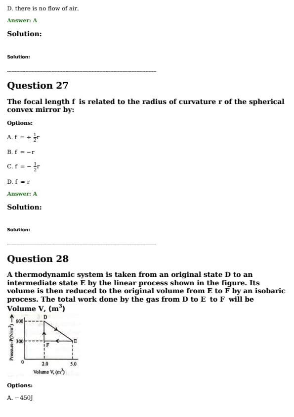A thermodynamic system is taken from an original state D to an intermediate state E by the linear process shown in the figure. Its volume is then reduced to the original volume from E to F by an isobaric process. The total work done by the gas from D to E to F will be: