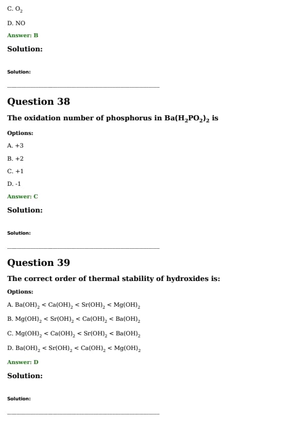 The oxidation number of phosphorus in \( \text{Ba(H}_2\text{PO}_2)_2 \) is: