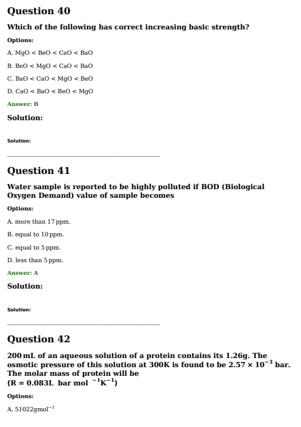 200 mL of an aqueous solution of a protein contains 1.26 g. The osmotic pressure of this solution at 300 K is found to be \( 2.57 \times 10^{-3} \, \text{bar} \). The molar mass of the protein will be: (R = 0.083 L bar mol\(^{-1}\) K\(^{-1}\))
