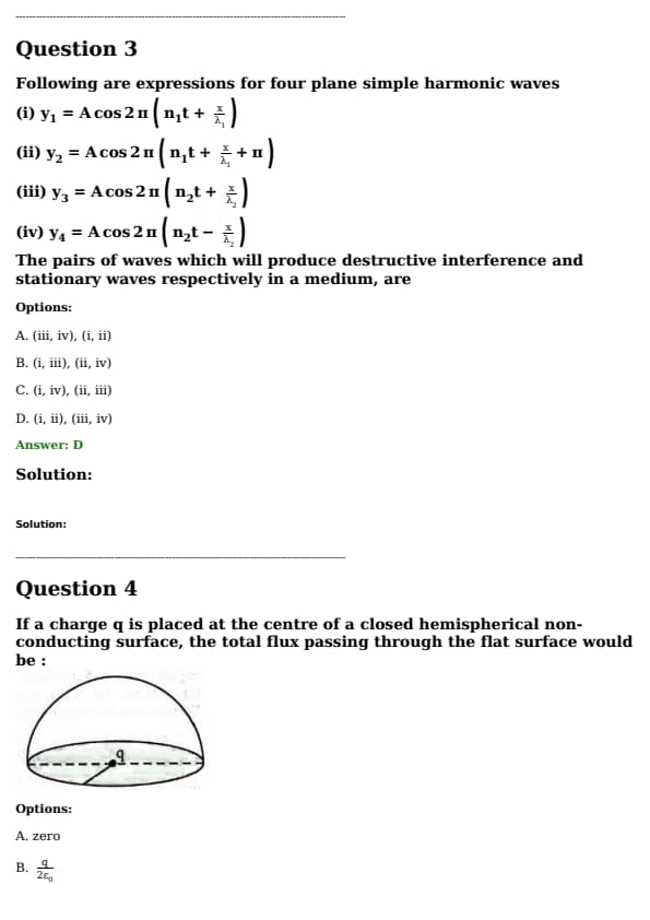 Following are expressions for four plane simple harmonic waves \(y_1 = A \cos 2 \pi \left( n_1 t + \frac{x}{\lambda_1} \right)\),