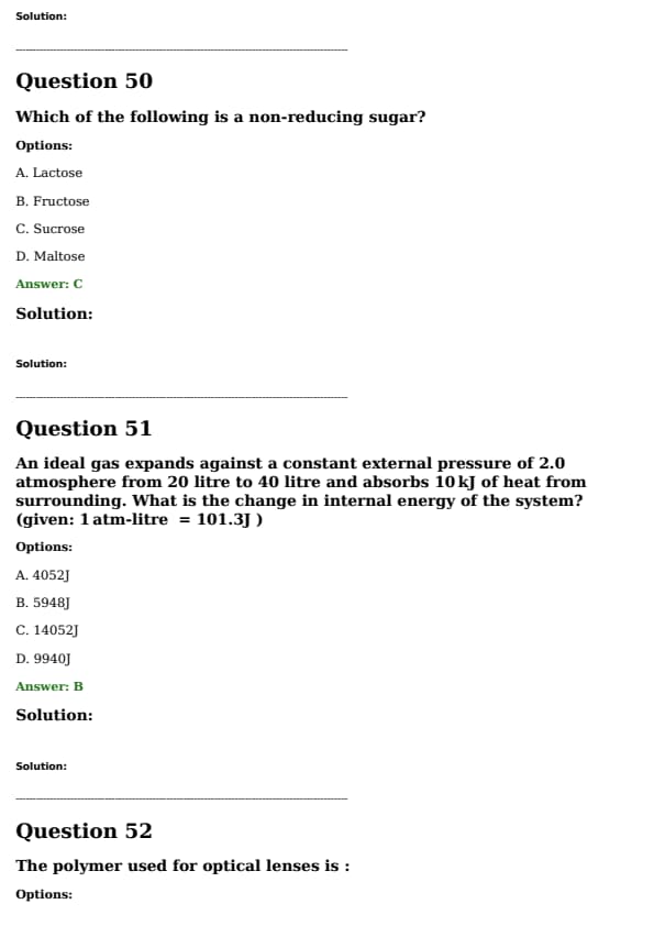An ideal gas expands against a constant external pressure of 2.0 atmosphere from 20 litre to 40 litre and absorbs 10 kJ of heat from the surrounding. What is the change in internal energy of the system? (given: \( 1 \, \text{atm-litre} = 101.3 \, \text{J} \))