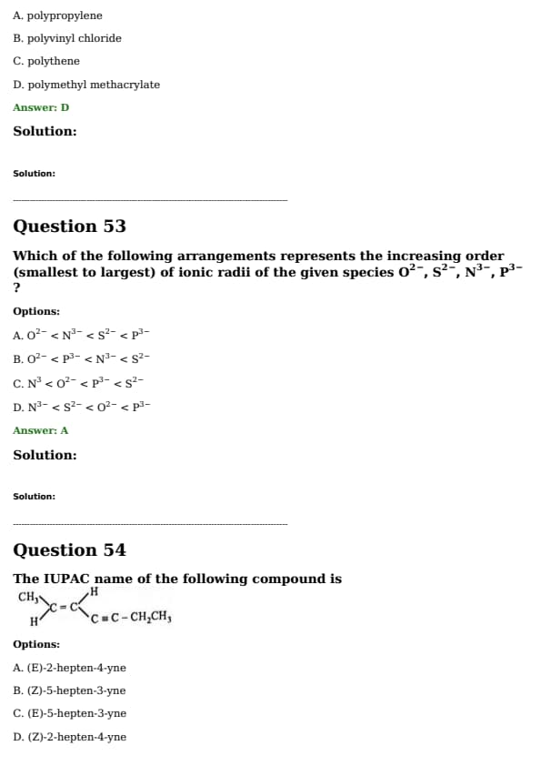 Which of the following order is not correct for the ionic radii of the given species: \( \text{O}^{2-} \), \( \text{S}^{2-} \), \( \text{N}^{3-} \), \( \text{P}^{3-} \)?