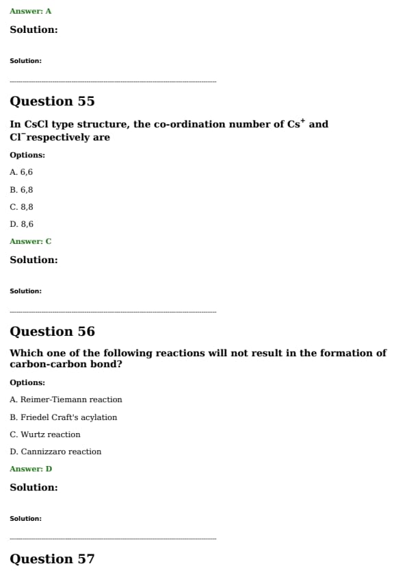 In CsCl type structure, the co-ordination number of \( \text{Cs}^+ \) and \( \text{Cl}^- \) respectively are: