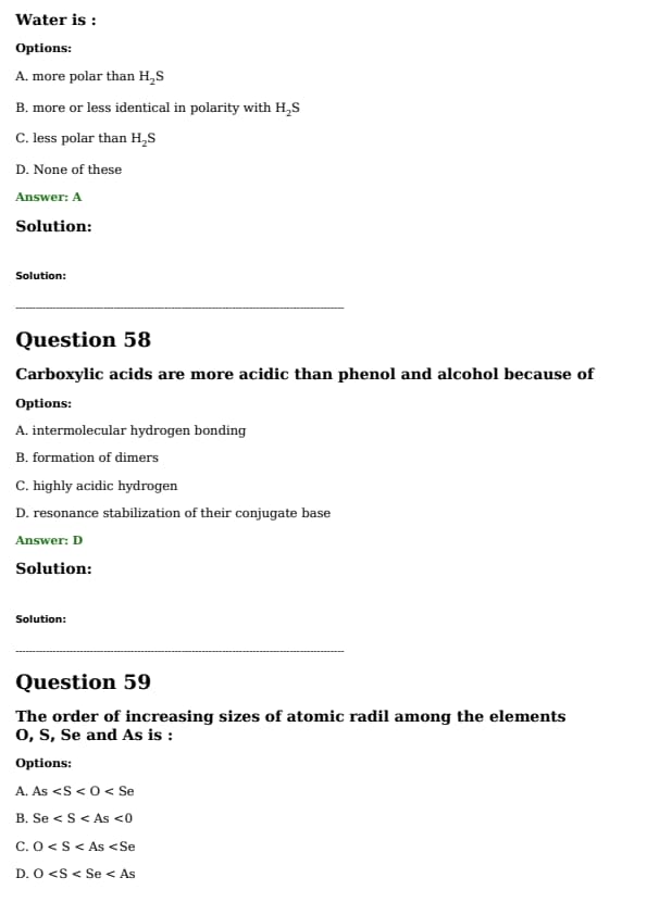 The order of increasing sizes of atomic radii among the elements O, S, Se, and As is: