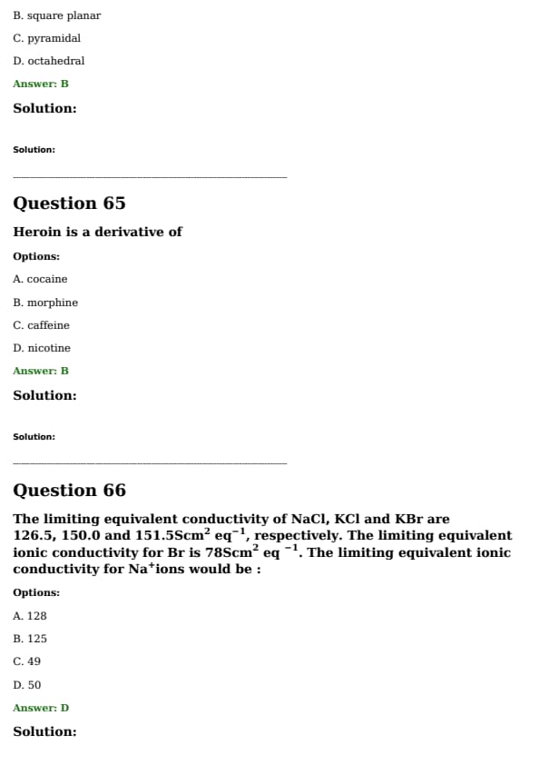 The limiting equivalent conductivity of NaCl, KCl and KBr are 126.5, 150.0 and 151.5 S cm^2 { eq^{-1 {, respectively. The limiting equivalent ionic conductivity for Br is 78 S cm^2 eq^{-1. The limiting equivalent ionic conductivity for Na^+ \text{ ions would be: