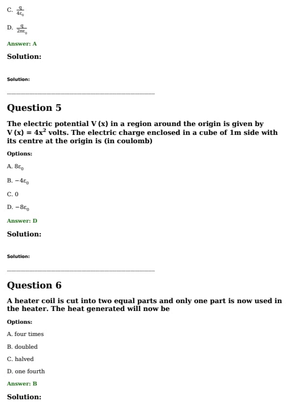 The electric potential \( V(x) \) in a region around the origin is given by \( V(x) = 4x^2 \, \text{volts}. \) \text{The electric charge enclosed in a cube of 1m side with its center at the origin is (in coulomb)