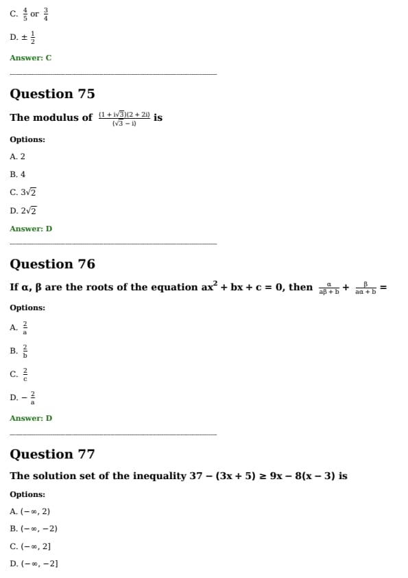 The distance between the parallel lines \[ 3x - 4y + 7 = 0 \quad \text{and} \quad 3x - 4y + 5 = 0 \text{ is } \frac{a}{b}. \text{ Value of } a + b \text{ is:} \]
