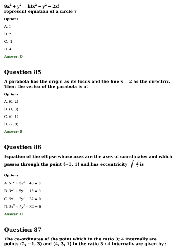 A parabola has the origin as its focus and the line \( x = 2 \) \text{ as the directrix. Then the vertex of the parabola is at: