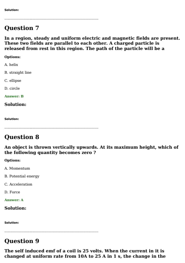 In a region, steady and uniform electric and magnetic fields are present. These two fields are parallel to each other. A charged particle is released from rest in this region. The path of the particle will be a