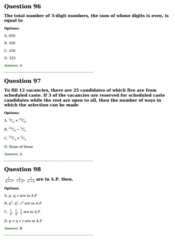 If \[ \frac{1}{q + r}, \quad \frac{1}{r + p}, \quad \frac{1}{p + q} \] \text{are in A.P., then:
