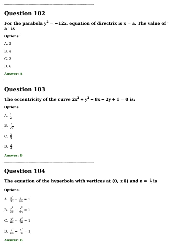For the parabola \( y^2 = -12x \), \text{the equation of the directrix is \( x = a \). \text{ The value of \( a \) \text{ is: