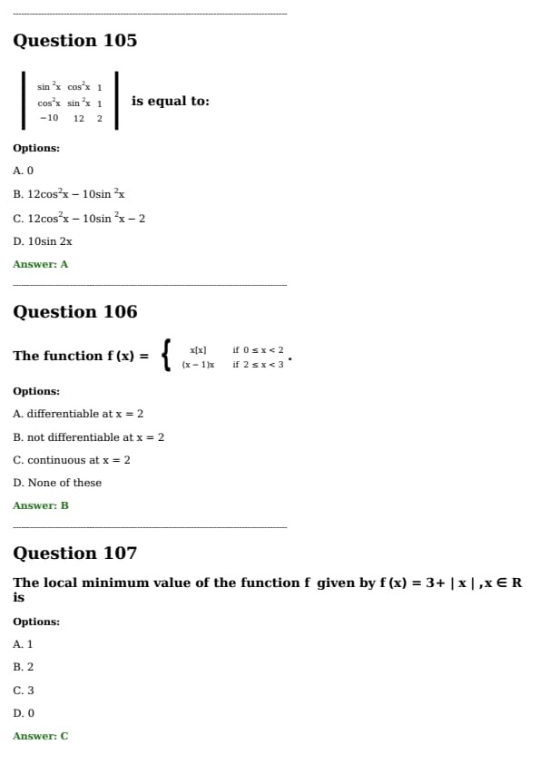 The following determinant is equal to: \[ \begin{vmatrix} \sin^2 x & \cos^2 x & 1