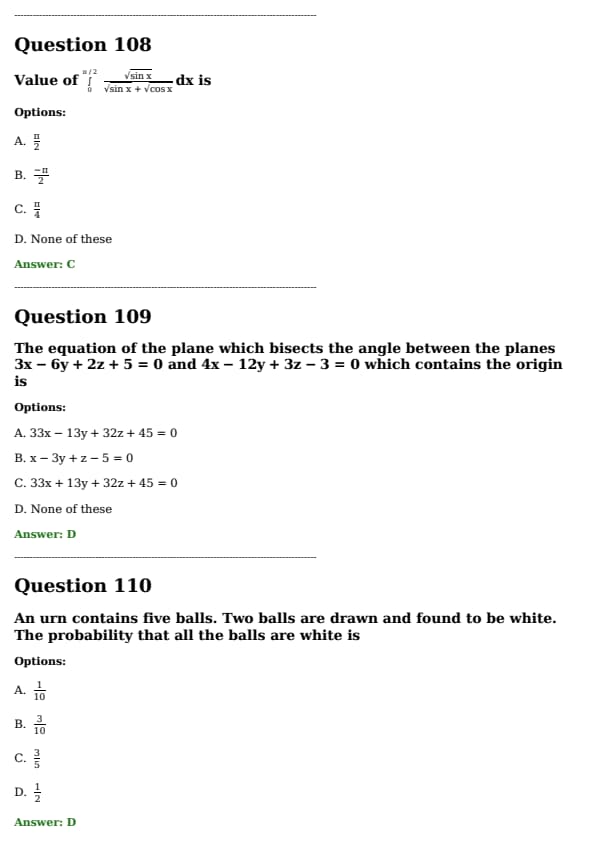 The value of the integral \[ \int_0^{\frac{\pi}{2}} \frac{\sqrt{\sin x}}{\sqrt{\sin x} + \sqrt{\cos x}} \, dx \] \text{is: