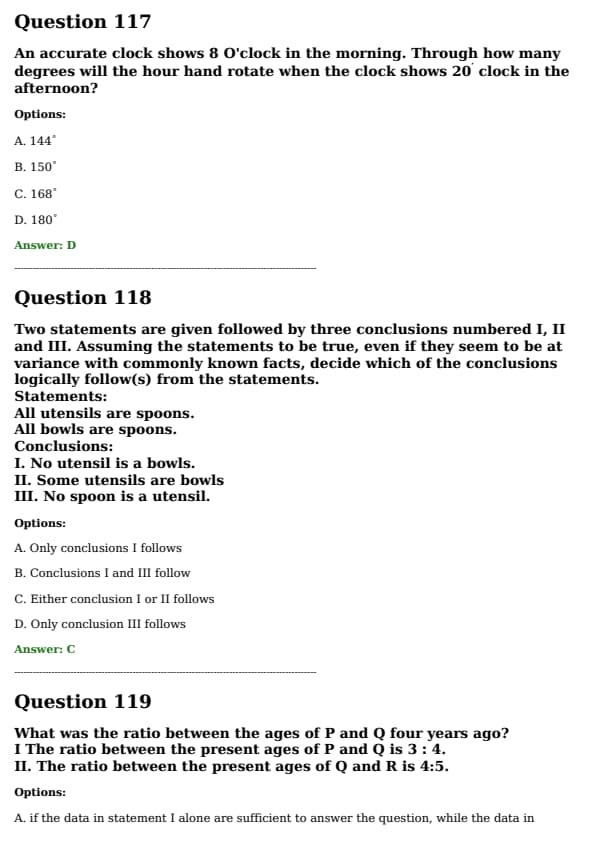 Two statements are given followed by three conclusions numbered I, II, and III. Assuming the statements to be true, even if they seem to be at variance with commonly known facts, decide which of the conclusions logically follow(s) from the statements. Statements: 1. All utensils are spoons. 2. All bowls are spoons. Conclusions: I. No utensil is a bowl. II. Some utensils are bowls. III. No spoon is a utensil.