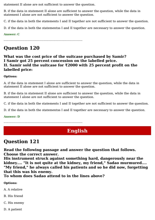 What was the cost price of the suitcase purchased by Samir? I. Samir got a 25 percent concession on the labelled price. II. Samir sold the suitcase for Rs.2000 with 25 percent profit on the labelled price.