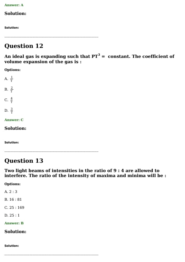 An ideal gas is expanding such that \( P T^3 = \text{constant} \). The coefficient of volume expansion of the gas is:
