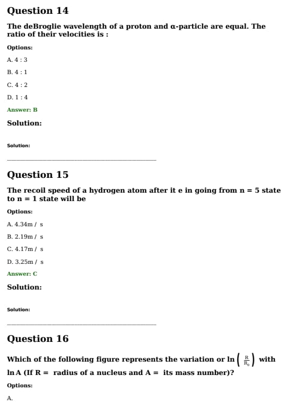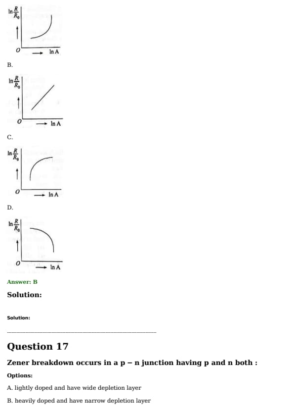 Which of the following figure represents the variation of \( \ln \left( \frac{R}{R_0} \right) \) with \( \ln A \) (If \( R \) is the radius of a nucleus and \( A \) is its mass number)?
