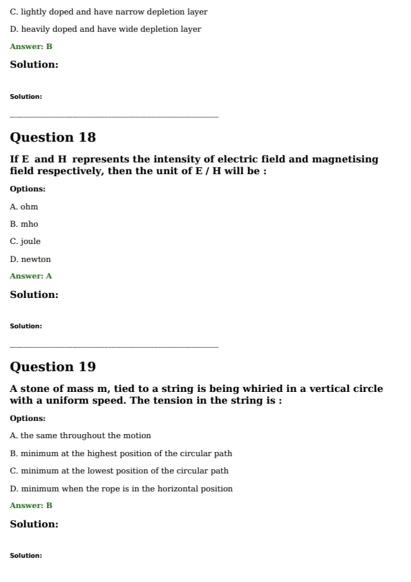 A stone of mass \( m \), tied to a string is being whirled in a vertical circle with a uniform speed. The tension in the string is: