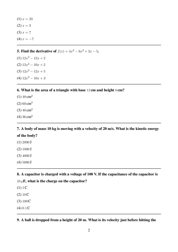| Algebra (Quadratic, Complex No.) | 6–7 |