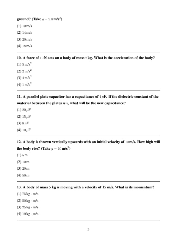 A body is thrown vertically upwards with an initial velocity of \( 10 \, m/s \). How high will the body rise? (Take \( g = 10 \, m/s^2 \))