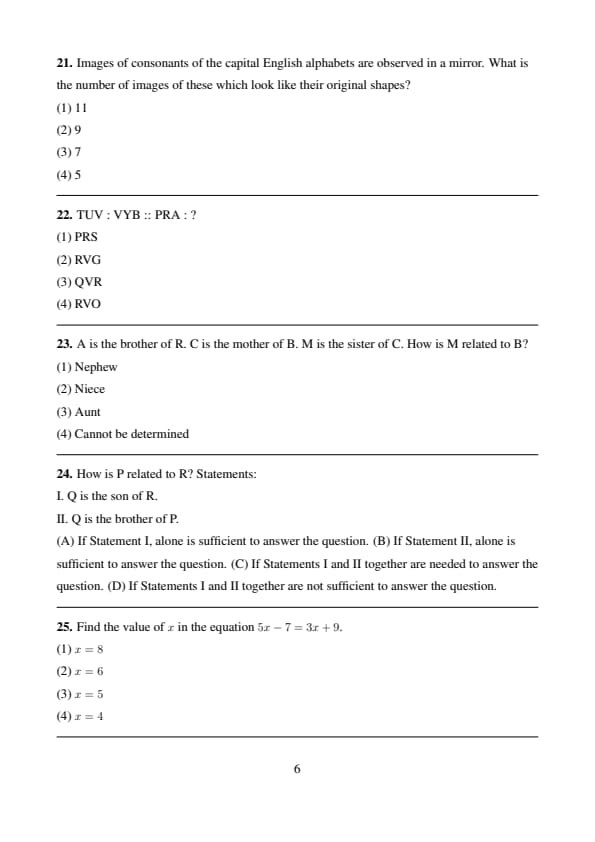 | Aptitude | 10 | Moderate | Basic logical reasoning and pattern questions |