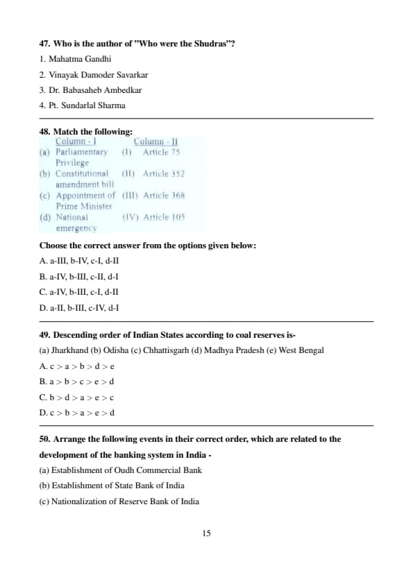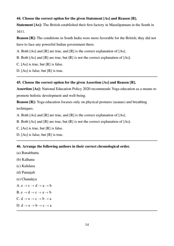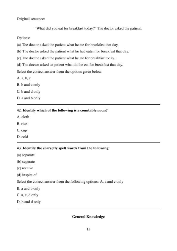 | General English | 10 | Easy to Moderate | Vocabulary & comprehension-based questions |