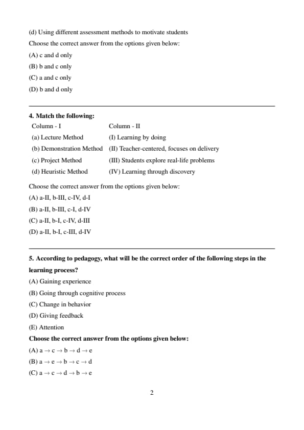 What will be the correct order of adopting teaching methods in Pedagogy?