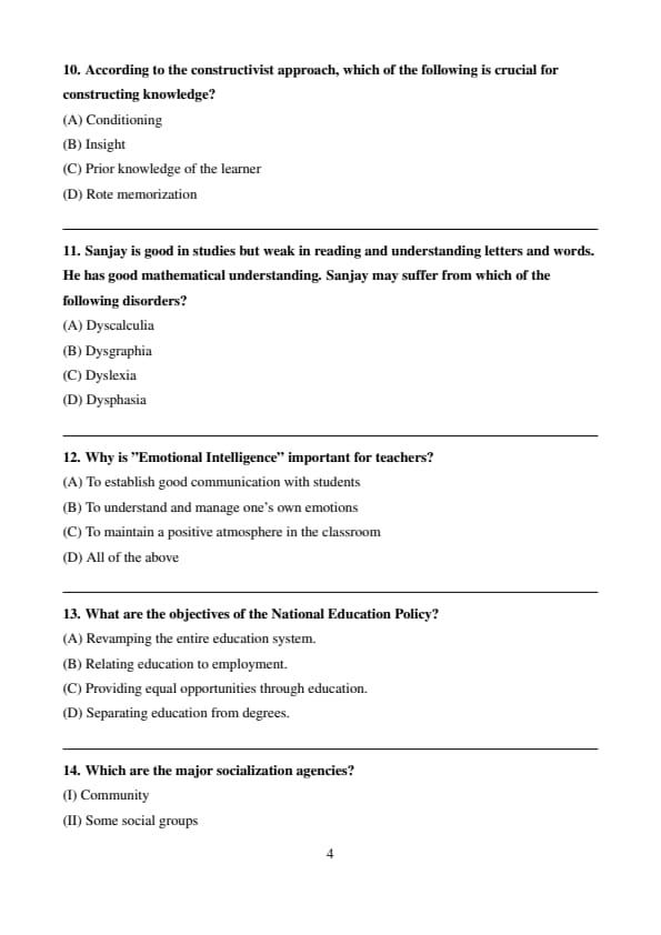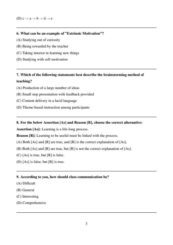 | Teaching Aptitude | 30 | Moderate | Focus on situational judgement, pedagogy-related items |