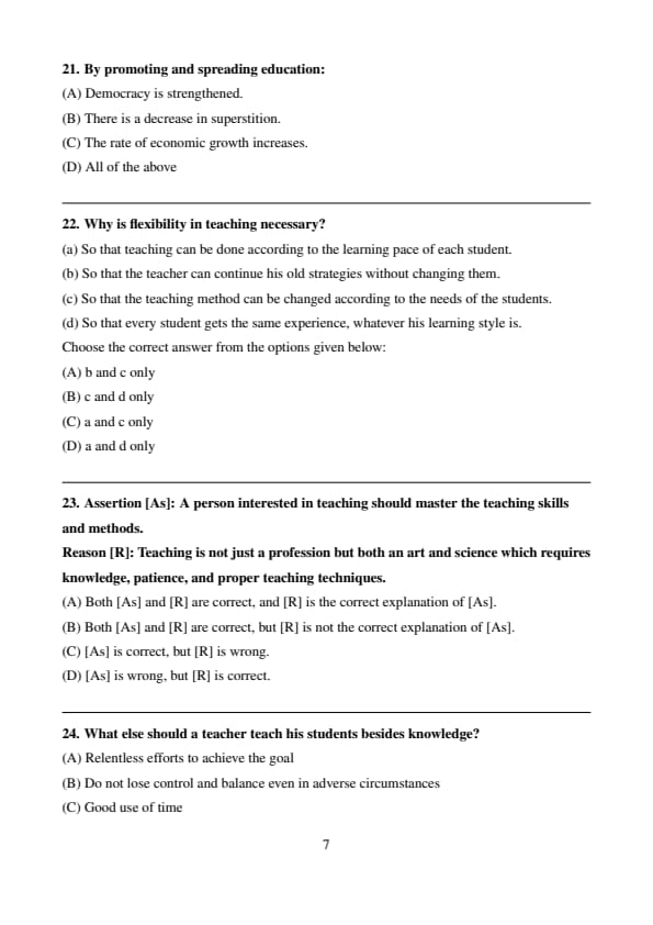 Assertion [As]: A person interested in teaching should master the teaching skills and methods.